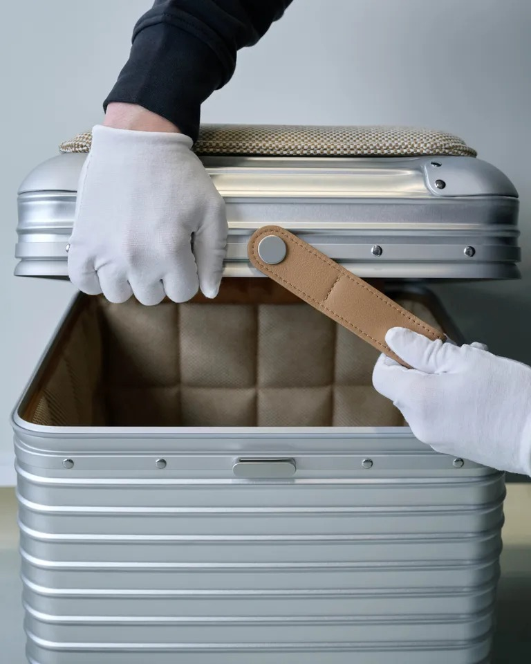 Todos os elementos em alumínio foram produzidos na sede da Rimowa em Colônia, enquanto os revestimentos e acabamentos têxteis foram desenvolvidos no campus da Vitra, em Weil am Rhein. Para Christian Grosen, diretor de design da Vitra, a colaboração era inevitável: “Compartilhamos valores essenciais — funcionalidade, precisão e design que atravessa o tempo.”