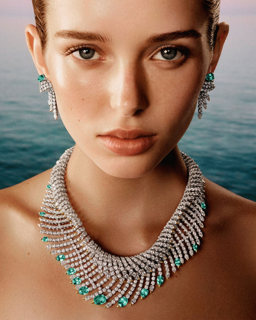 A Tiffany & Co. apresenta a coleção Blue Book 2025: Sea of Wonder, o capítulo mais recente da alta joalheria da maison. Inspirada na força mítica dos oceanos e nas geometrias orgânicas das profundezas, a coleção transforma luz, mineral e movimento em um exercício de arte e precisão técnica.