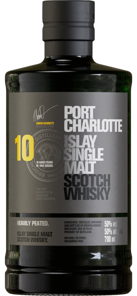 Produzido na ilha de Islay, território historicamente associado a expressões intensas de turfa, o rótulo mantém a identidade robusta característica da região, mas acrescenta camadas que se revelam ao longo da degustação. O envelhecimento prolongado e a combinação de barris de diferentes origens conferem amplitude ao perfil sensorial, permitindo que notas frutadas, especiarias e elementos salinos coexistam com a fumaça persistente. A presença da turfa permanece evidente, porém organizada de modo a não dominar a experiência por completo.