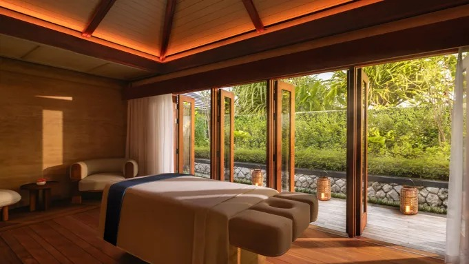 A arquitetura rompe com o padrão neutro tradicional. O Regent Spa Bali substitui tons minimalistas por paletas vibrantes e percursos artísticos. Salas com portas deslizantes permitem integração direta com a natureza, ampliando a experiência sensorial.