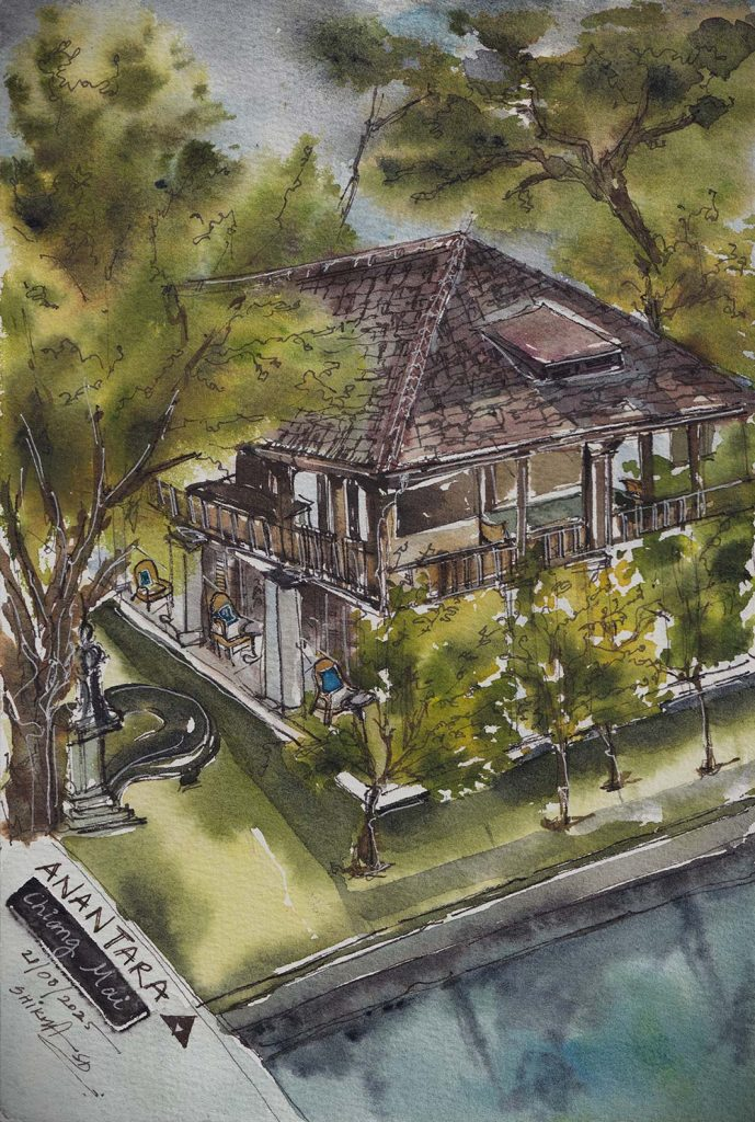 Esboço feito por um escritor sobre o antigo Consulado Britânico no Anantara Chiang Mai.