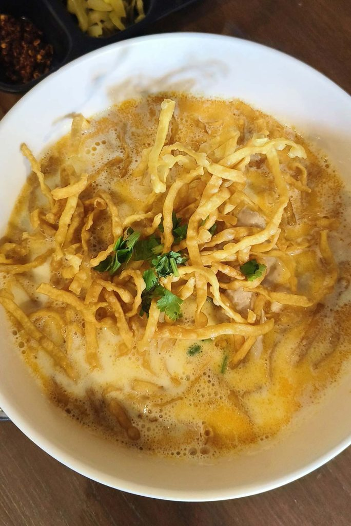 Uma deliciosa tigela de Khao Soi, a popular sopa de macarrão com curry de Chiang Mai. (Imagem Reprodução )