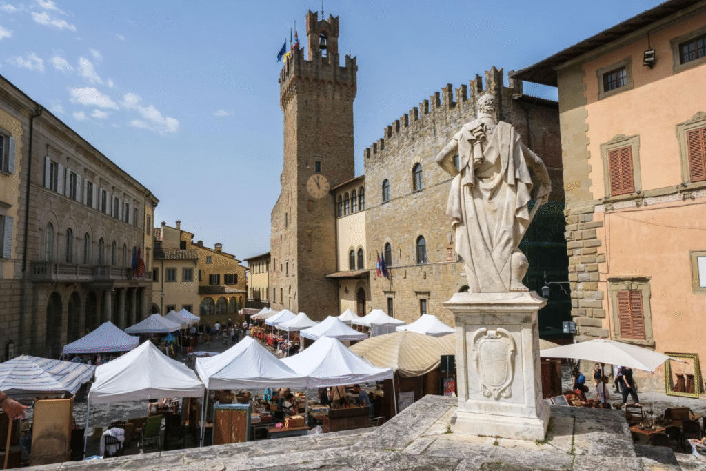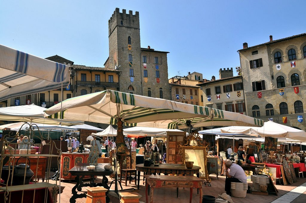 A tradicional Fiera Antiquaria di Arezzo, criada em 1968, ocupa o centro histórico da cidade e reúne antiquários, galeristas e comerciantes especializados vindos de diversas regiões da Itália e da Europa.